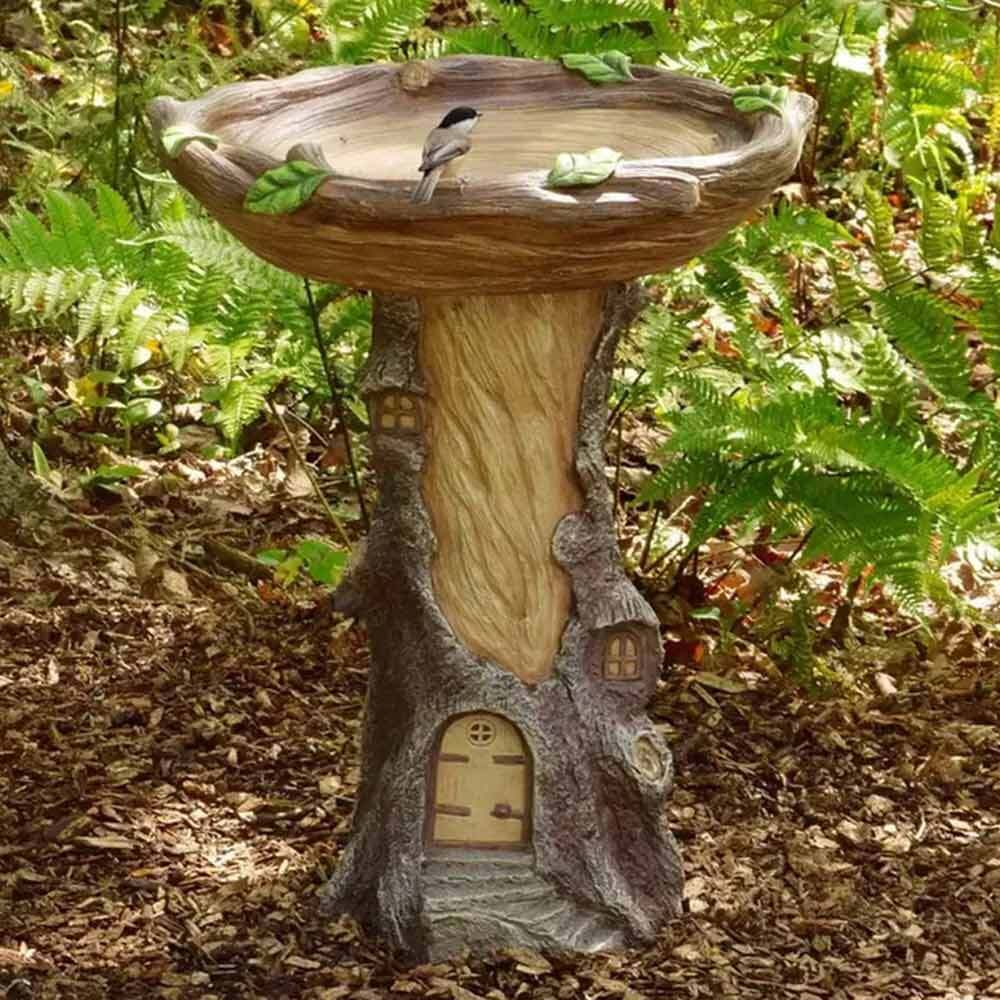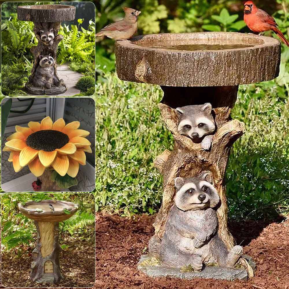 * Attractive design: This bird bath is in sunflower/raccoon/tree house shape with vivid colors and cute shape. It has flat bottom, making it light and easy to move. It turns your garden or courtyard into an elegant and charming space.