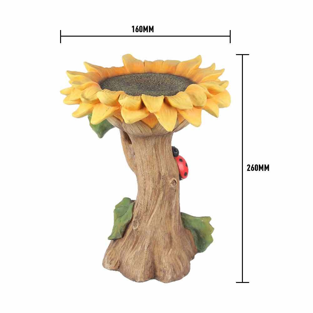 * Exquisite handwork: The weather-resistant resin bath has tree base, and exquisite carving details are engraved on petals, stems and leaves. You will love the bright sunflowers, and the birds will love the water basin.