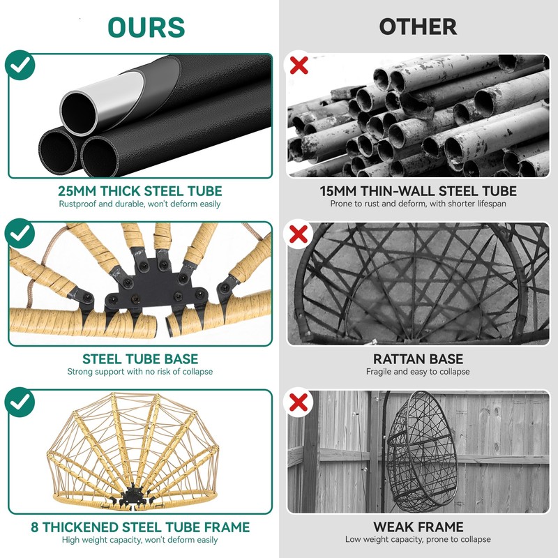 Hanging Rattan Egg Chair with Stand Cushion Indoor Outdoor Garden Steel