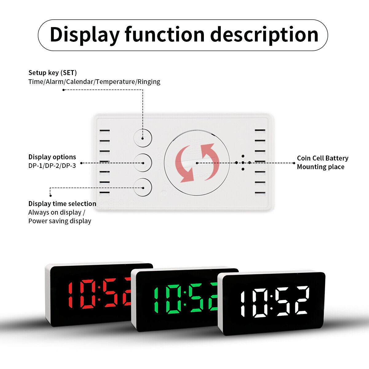 | Features | Large Display,LED Display,Snooze Alarm,Temperature Display,Travel,USB Charging Port |