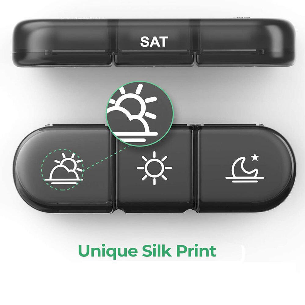 - No Need to Remember: The 7-day pill organizer helps you keep better track of your medication with marks on the front for each day. This eliminates the need to remember multiple times a day, and you only need to fill the pill organizer once a week.