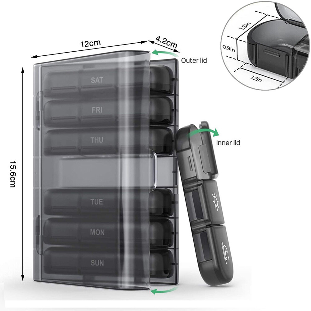 - Double Protection: Your medication is safeguarded with double protection. The outer durable ABS box container and food-grade daily pill boxes keep your medicine secure. Snap-shut lids further protect your pills from spilling out.